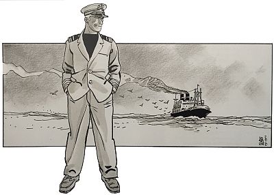 Die ersten drei Bände von „Tramp“ erschienen weiland bei Carlsen, dann wechselte die Reihe für eine Ausgabe zum kurzlebigen Phoenix Verlag (hier im HC-Format), ehe Comicplus übernahm, wo sechs Alben erschienen (Band 5-10) und anschließend die Gesamtausgabe lanciert wurde. Der letzte und nun abschließende Teil, der in Frankreich erst wenige Wochen vor Patrick Jusseaumes Tod veröffentlicht wurde, ist auf Deutsch erstmals und nur in diesem Band der Gesamtausgabe enthalten. Die Serie zeichnet sich nicht nur durch das ungewöhnliche Setting aus (die Geschichte eines Handelskapitäns in den späten vierziger und frühen fünfziger Jahren), auch die Hauptfigur spiegelt nicht den typischen Heldentypus wider, den man vielleicht erwarten mag. Der Bretone Yann Calec ist kein strahlender Draufgänger, der furcht- und sogar gewissenlos seinen Weg geht. Oft wirkt er stoisch und melancholisch, unterbrochen von Gemütsausbrüchen der einen oder anderen Art. Ein wenig Corto Maltese könnte man in ihm sehen. Dann handelt er mehrmals gegen seine Überzeugung. Er lässt die Folter in Indochina durchgehen, widersetzt sich der Gewerkschaft. Nur als er Sklaven aufnehmen soll (die gab es im arabischen Raum damals tatsächlich noch) wiedersetzt er sich und trotzt der Vernunft – schließlich steht das Leben seiner Tochter auf dem Spiel.