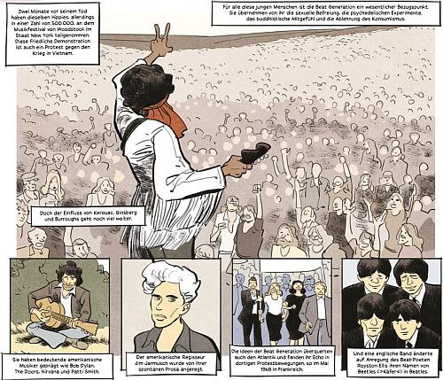 Nicht weniger als epochal und enzyklopädisch ist damit auch der zweite Band des ambitionierten Projektes, in dem Catherine Mory, Oliver Gallmeister, Francois Guérif und Jean-Baptiste Hostache damit nun die Geschichte der US-Literatur komplettieren. In gewohnter Manier werden Inhalte der Werke mit biographischen Zügen vermischt, im Funny-Stil dargeboten, mit Kommentaren der Literaturwissenschaft angereichert und damit in einen gesamtkünstlerischen Kontext gestellt. In einem Epilog am Ende schlagen zwei Pilgerväter den Bogen zurück zum Anfang: die Literatur spiegele ihren Versuch, eine neue, bessere Welt zu erschaffen, und zeige gleichzeitig Unzulänglichkeit und Scheitern.