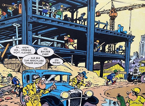 Stammzeichner der Reihe ist Arthur Berckmans, der sich Berck nannte und der 2020 verstorben ist (Cauvin überlebte ihn nur acht Monate). Er gestaltet Sammy und Jack im Funny-Stil, wunderbar elegant, ohne Ecken und Kanten, wobei der Inhalt trotz Gags und Klamauk auch erwachsenere Töne präsentiert. Berck arbeitet historisch äußerst akkurat und füllt seine Panels immer wieder opulent aus. Ansichten des im Bau befindlichen Wolkenkratzers oder die Theater-Szenen mit der Diva stecken so voller Details. Furiose Baller-Orgien gehören ebenso zu den Geschichten wie die optisch umgesetzten Running Gags von Cauvin (Sammy mit seinen Beruhigungspillen und seine wunderbare Mimik dabei!), wobei die Story bei den abwechslungsreichen Settings und Motiven stets im Blick bleibt.