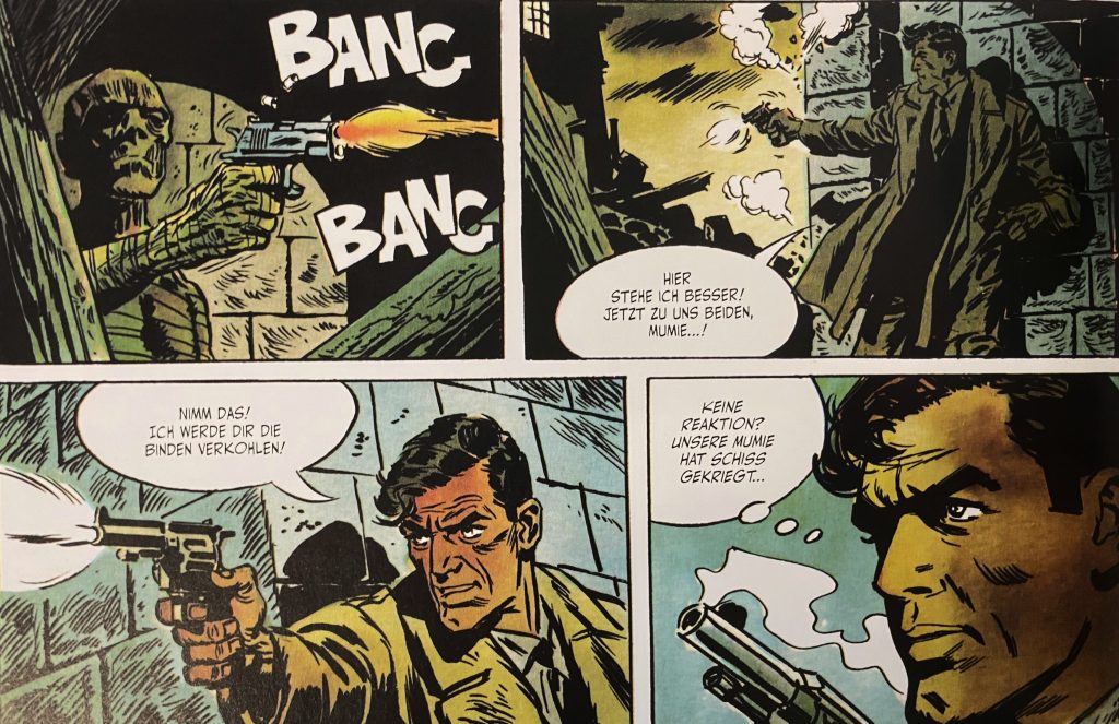 Bei den drei Geschichten handelt es sich um klassische Abenteuer, wobei die erste als lupenreine Science Fiction heraussticht. Die Aliens sind zwar nicht zu sehen, aber echt und mächtig (sie erschaffen eine künstliche Sonnenfinsternis, um ihrer Forderung Nachdruck zu verleihen) und die Geschehnisse wie auch die spannungsgeladene Atmosphäre erinnern an eine klassische Quatermass Episode. Wobei sich Foran bei seiner Reise nach Tibet auch mit weltlichen Problemen, wie Banditen, herumschlagen muss. Bei den folgenden Alben sind Mumie und Flussmonster eher „bodenständiger“ Natur. Und dass die Mumie im düsteren Schottland umgeht, statt im heimatlichen Ägypten, ist dabei ein origineller Einfall. Wobei das Auftreten der Mohawk Indianer in der letzten Story etwas aus der Zeit gefallen wirkt.